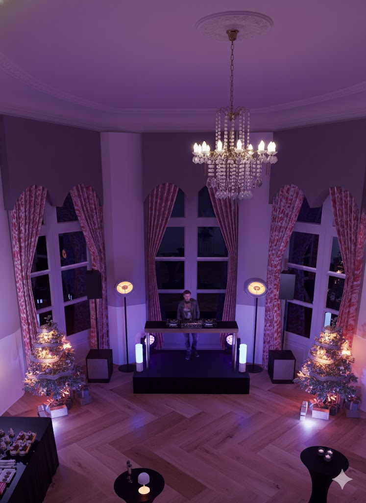 Nous travaillons à partir de vos plans, photos de repérage ou relevés sur site. Chaque détail est pensé comme le jour J : implantation des tables, hauteur de scène, éclairage d’ambiance, zones VIP, branding client…